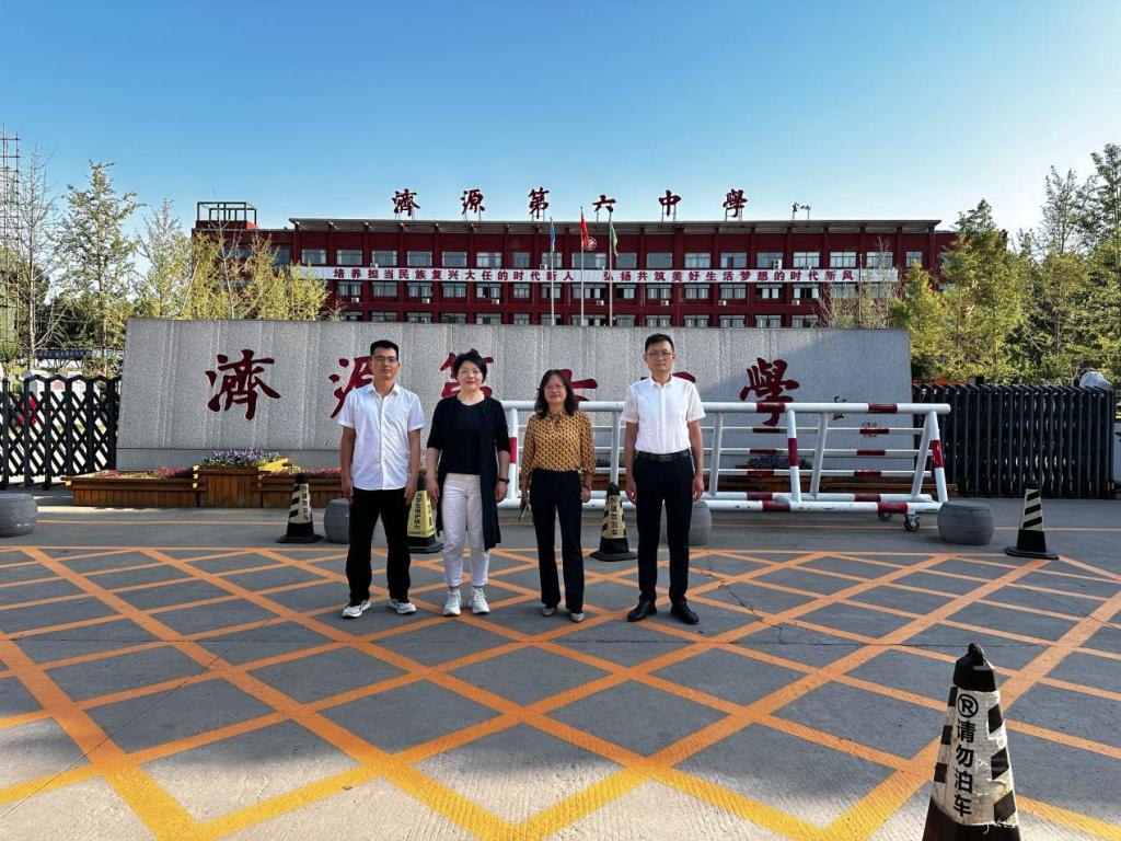 在济源市第四中学,柳素平、薛冬梅、李向民、郝菁及大外一部副主任王磊一行五人与济源第四中学教导处主任徐延召及骨干教师周集伟进行了面对面沟通,并就下一步交流合作达成初步意向。
