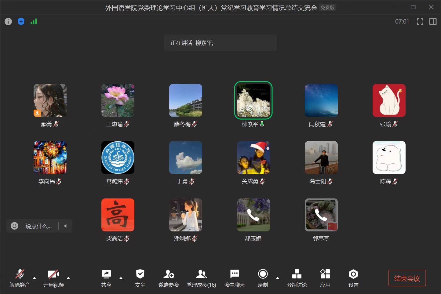 7月20日,tyc41183太阳成集团召开党委理论学习中心组(扩大)学习会议,开展党纪学习教育学习情况总结交流。学院党委委员、各支部书记参加会议,学院党委书记柳素平主持学习。