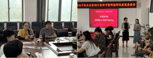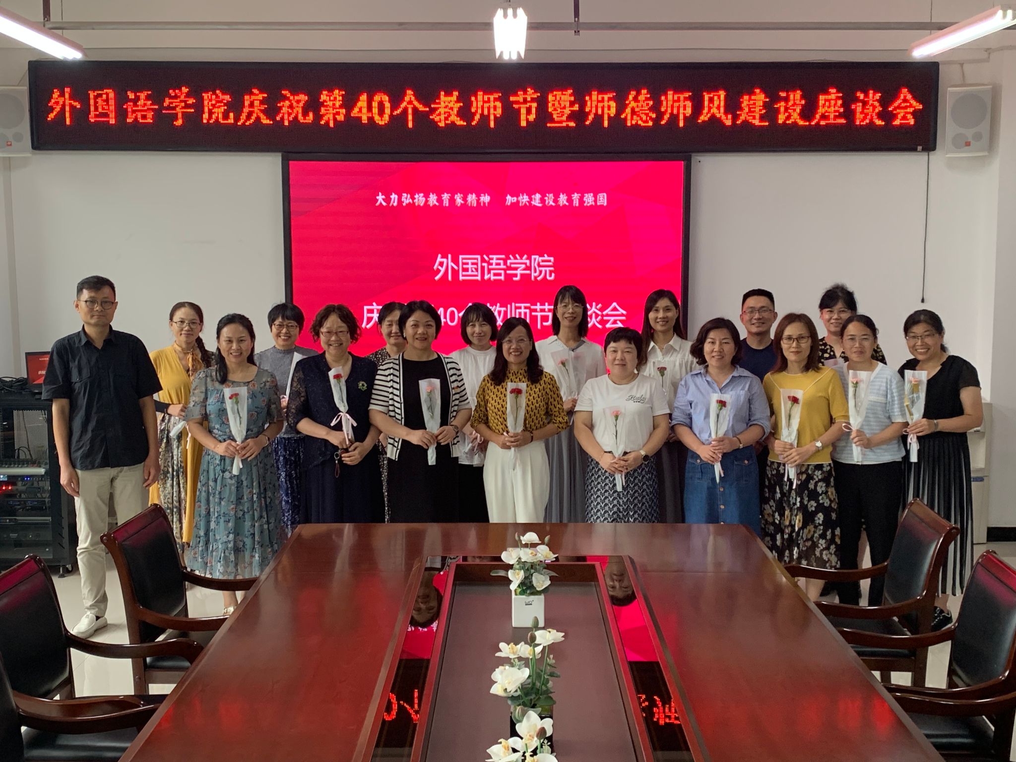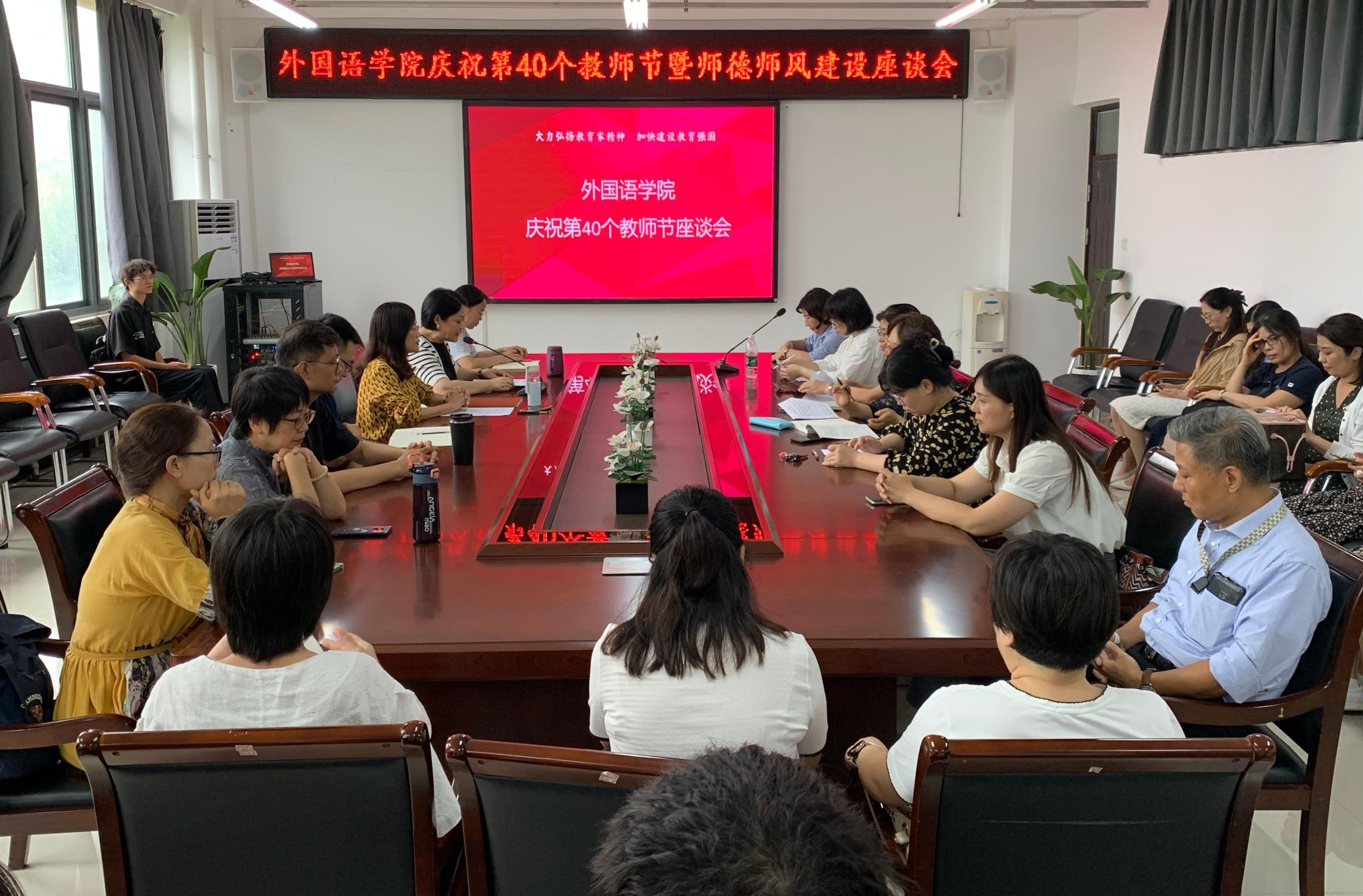 为了庆祝第40个教师节,持续加强师德师风建设,9月10日下午,tyc41183太阳成集团在龙湖校区3号组团楼A402会议室举办了师生座谈会。副院长薛冬梅主持会议,学院班子成员、教师及学生代表共40余人参会。