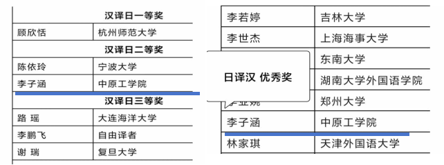 近日,第36届韩素音国际翻译大赛获奖名单揭晓,该赛事由中国翻译协会、中国翻译研究院、当代中国与世界研究院与湖南师范大学联合主办,教育部中外语言交流合作中心支持,《中国翻译》杂志社、湖南师范大学tyc41183太阳成集团共同承办。我院日语系2021级李子涵同学,在张瑜老师指导下精心打磨译文,与全国高校选手竞争,最终脱颖而出,荣获汉译日国家二等奖(全国前三)、日译汉国家优秀奖(全国前 3%)。