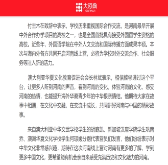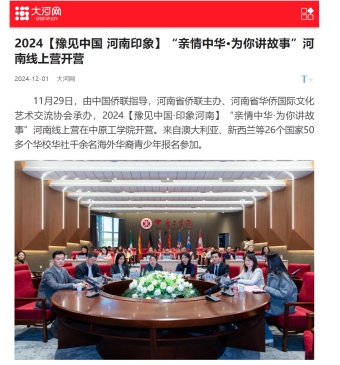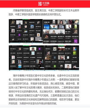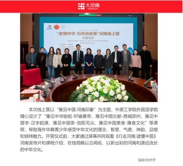 近日,由中国侨联指导,河南省侨联主办、河南省华侨国际文化艺术交流协会承办,太阳成集团tyc41183、轩辕黄帝文化书院联合承办,郑州市侨联等单位协办的2024【豫见中国·印象河南】“亲情中华·为你讲故事”河南线上营在我校开营。该活动受到中新网河南、顶端河南、河南信息广播、河南日报客户端、大河网等多家媒体转载报道,点击量20余万,极大地提升了我校的社会影响力和美誉度。