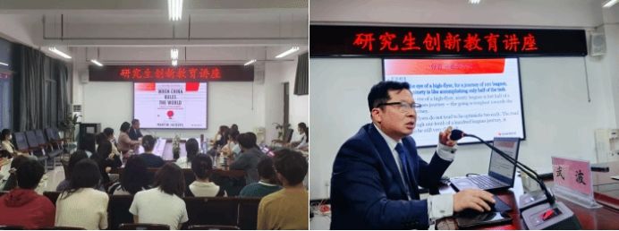 讲座伊始,武教授以“文化”为切入点,细致阐述了翻译中国的原则与方法。他提出,翻译中国宜遵循“内外有别”“译随境变”“最大公约与最佳对称”三大原则,在具体翻译实践中宜采取“迻文译化大翻译”“原汁原味与异化优先”两大方法。随后,武教授结合自己在译校实践中的多个翻译案例,进行了具体讲解。最后,武教授以 2008 年北京奥运会口号“One World One Dream” 以及 2020 年东京奥运会口号“United by Emotion”的汉译为例,引导师生思考翻译中国的路径与原则。