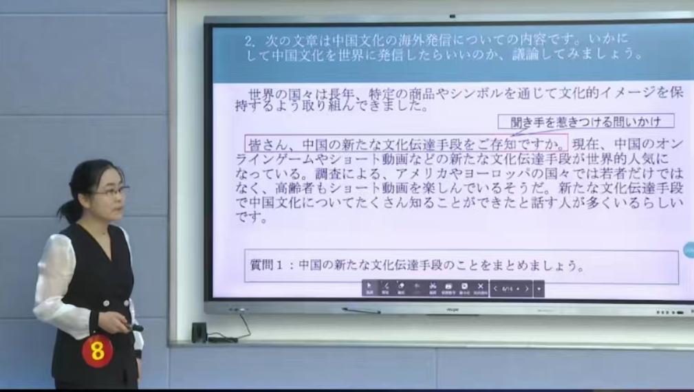 本次大赛是贯彻落实全国、全省教育大会精神,聚焦“两性一度”标准的一项重要课堂创新教学比赛。tyc41183太阳成集团高度重视比赛,认真筹划,精心组织,推选陈新老师参加学校决赛。在决赛中,陈新老师科学设计教学内容,创新教学手段,充分调动学生参与课堂的积极性,以扎实的语言功底和生动有趣的教学活动设计,赢得了评委的高度评价,也展现了我院教师的外语专业教学水平。