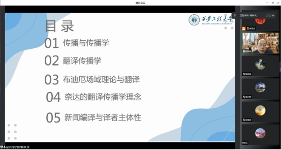 胡伟华教授的讲座从“传播与传播学”“翻译传播学”“布迪厄场域理论与翻译”“奈达的翻译传播学理念”等四个方面展开。