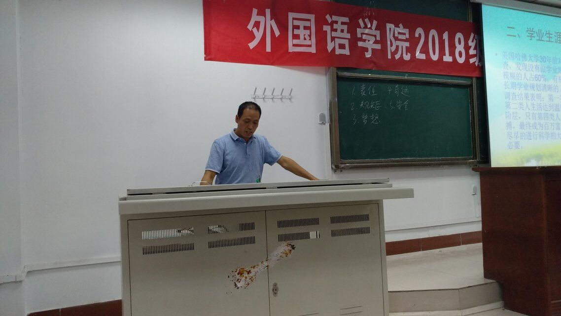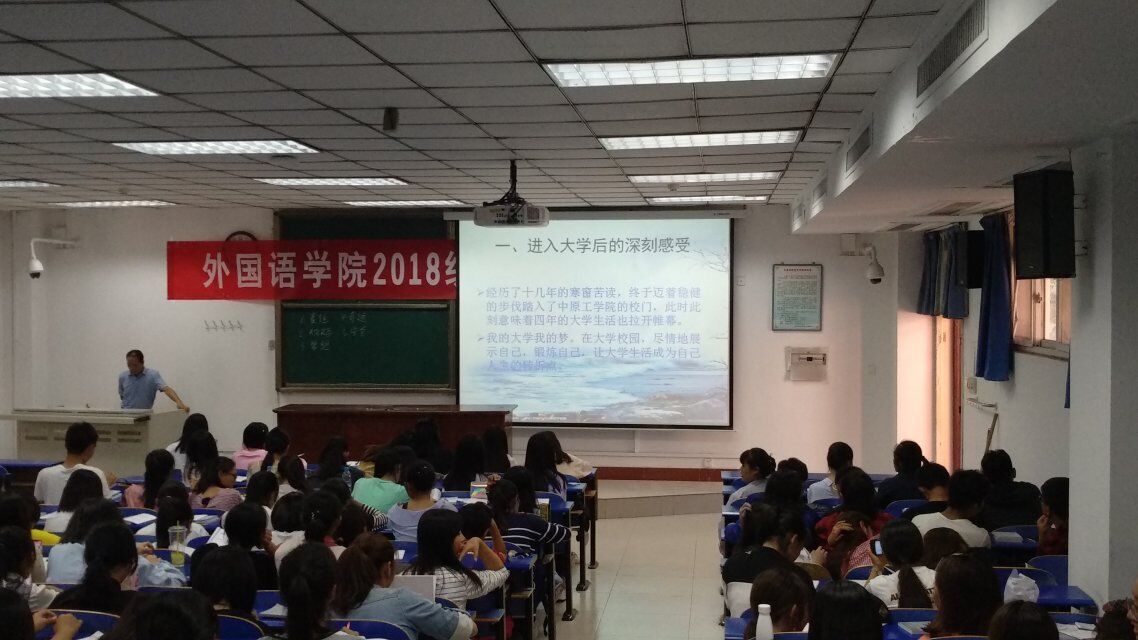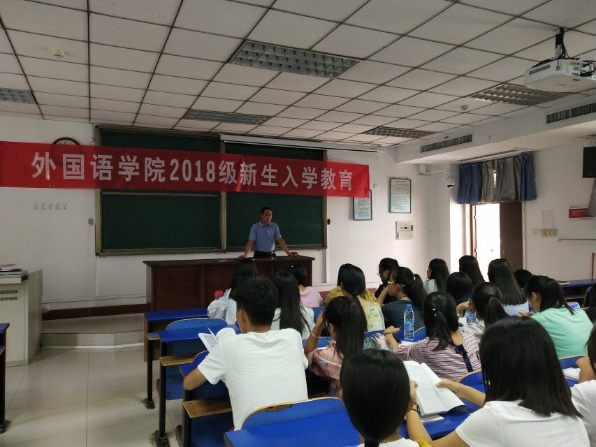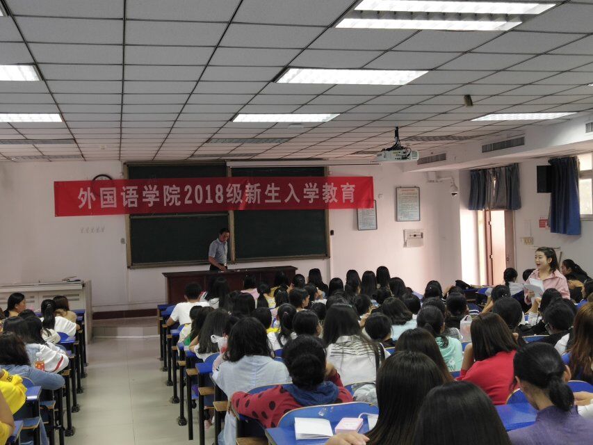 2018年9月21日下午2点,tyc41183太阳成集团筹备已久的2018级新生入学教育大会在四号教学楼214教室正式开始。莅临本次会议的有党总支副书记周全营,学生会部分部长以及全体大一新生积极到场参与。