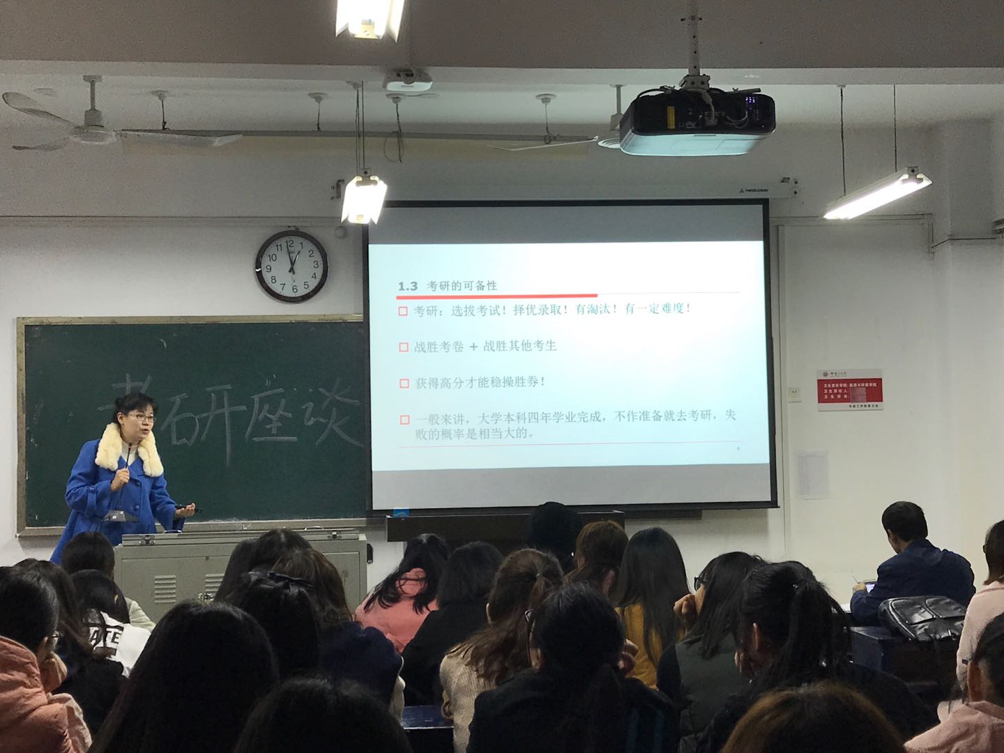 交流会中,郭亭亭老师从考研的必要性及可准备性,考研相关政策及报考流程简介,英语专业考研全国招生院校概况,英语专业考研考试科目宏观分析,英语专业考研专业课微观分析五方面向学生讲解关于考研的信息。