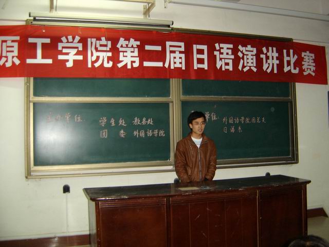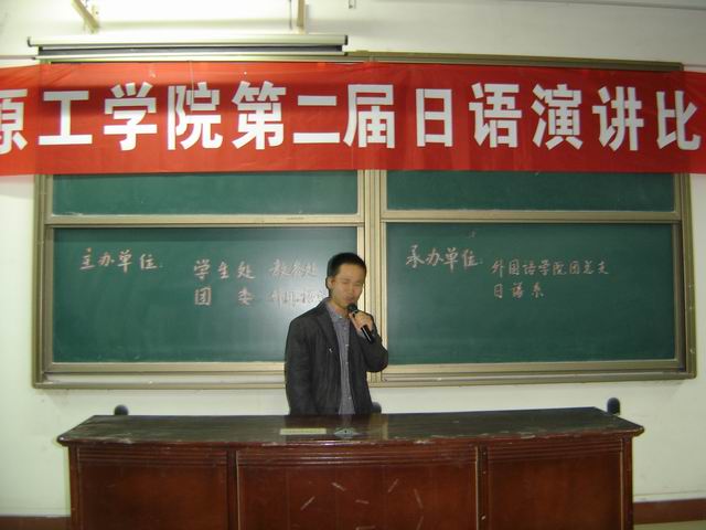 4月7日晚6时,由学生处、教务处、团委、tyc41183太阳成集团主办,tyc41183太阳成集团团总支、日语系承办的第二届日语演讲比赛在3#210拉开序幕。tyc41183太阳成集团副院长杨道云、副书记李向东、团总支书记杨为学、日语系主任边冬梅、日语外教大原知义、讲师张瑜、于勇老师作为评委及嘉宾出席本次比赛。本次比赛由孙世超、李萌园作为主持人。