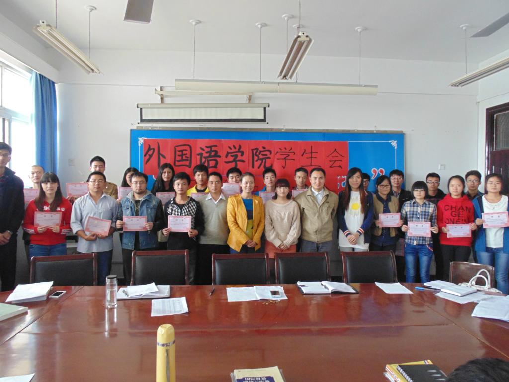 会议表彰了在2012-2013学年度表现优异的学生会干部,并经过选举产生了新一届学生会领导机构。会议由前学生会书记徐先麒主持,会议期间陈慧书记对学生会成员进行了鼓励,给予了对学生会工作的肯定,并对学生会未来工作进行了指导。在会议结束后,各部门进行了合照留念活动。