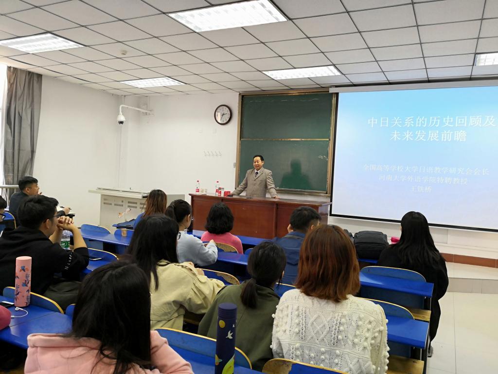 11月2日,河南大学特聘教授、博士生导师王铁桥应邀来我校作学术报告,报告题目为《中日关系的历史回顾及未来发展趋势展望》。学术报告由我校tyc41183太阳成集团日语系主任边冬梅主持,我校tyc41183太阳成集团日语系师生共二百余人聆听了报告。