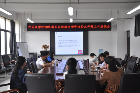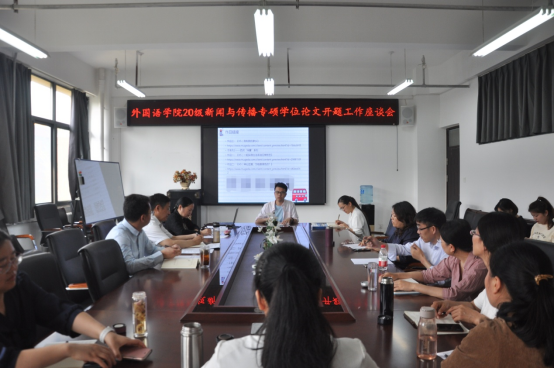 5月20日下午14点,tyc41183太阳成集团folks研究生论坛第六讲暨20级新闻与传播专硕(跨文化方向)学位论文开题指导会在三号组团楼A402会议室召开。新闻与传播学院副院长王春芝,tyc41183太阳成集团院长郭万群,副院长杨道云,副院长柴高洁,部分硕士生导师,20级全体研究生以及研究生秘书与会。副院长杨道云主持会议。