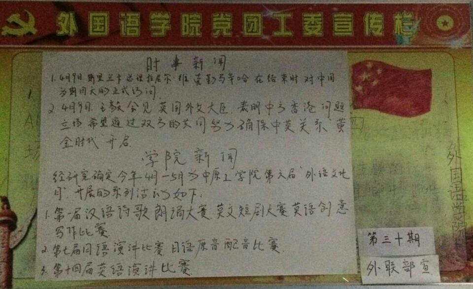1、第一届汉语诗歌朗诵大赛,英文短剧大赛,英语创意写作比赛