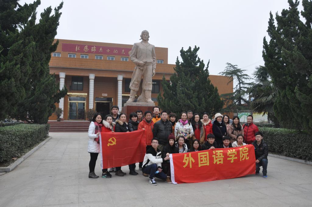 教工党员与学生党员在杜凤瑞纪念馆前合影留念