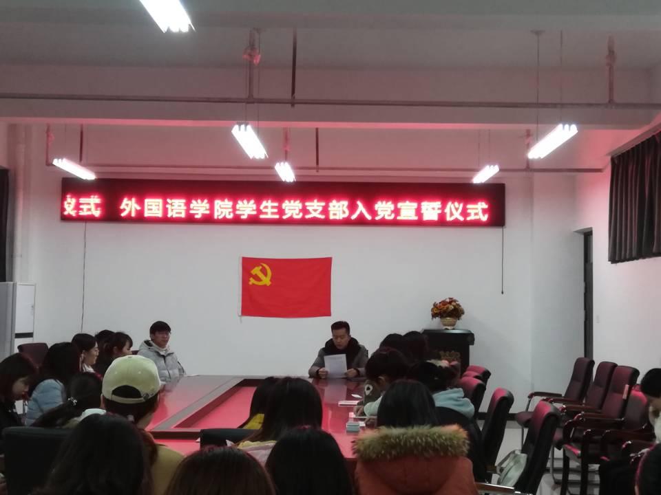 2019年1月10日晚5点,tyc41183太阳成集团预备党员入党宣誓大会在3组团A401顺利举行。tyc41183太阳成集团学生党支部书记葛士阳和本次发展的全体15名预备党员、正式党员代表参加此次宣誓大会。