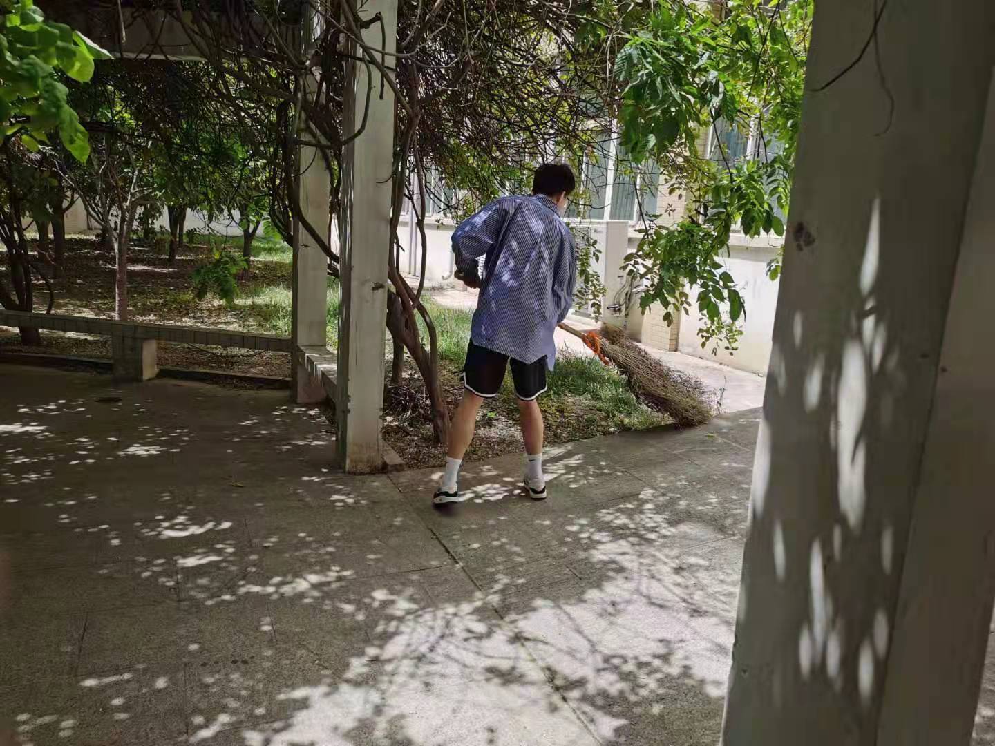 学生党员们顶着高温和大风天气,手持劳动工具清扫垃圾,不怕脏,不怕累,不避重就轻,仔细清扫每一个角落,圆满完成了本次劳动实践活动。