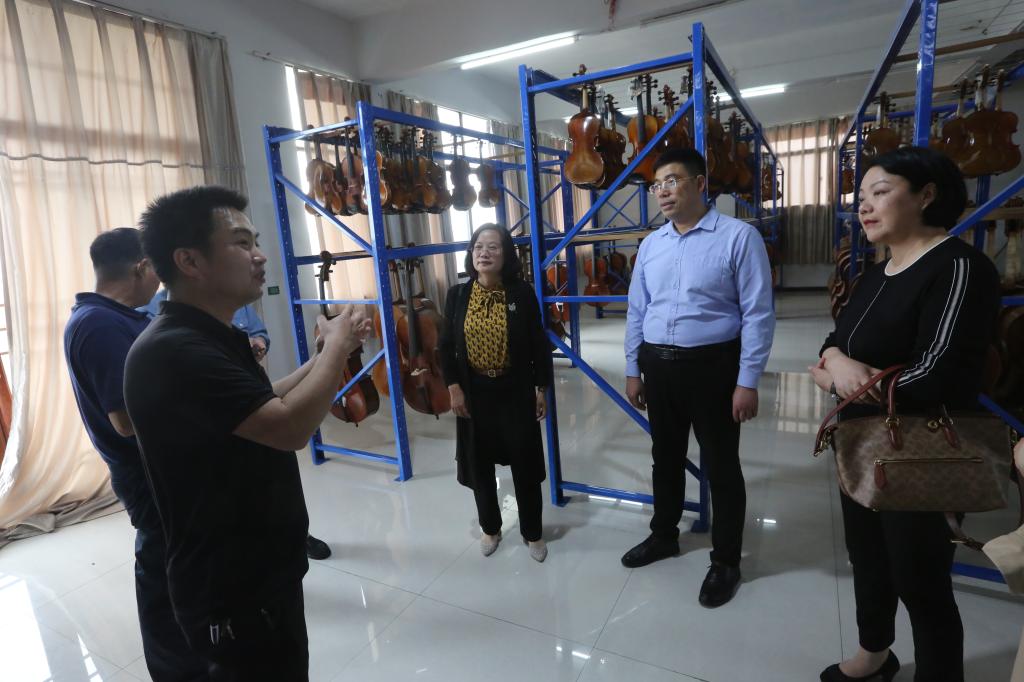 为深入了解乡村文明建设,柳素平一行人还参观了确山县新时代文明实践中心,沉浸式了解到中心的软件建设、硬件设施及其开展的多项工作,取得的众多标志性成果,为学院的精神文明建设提供了思路和启示。同时,还到确山县竹沟镇小王庄,深入手工提琴制作基地,调研产业发展人才岗位需求,为2023届毕业生拓宽就业途径。