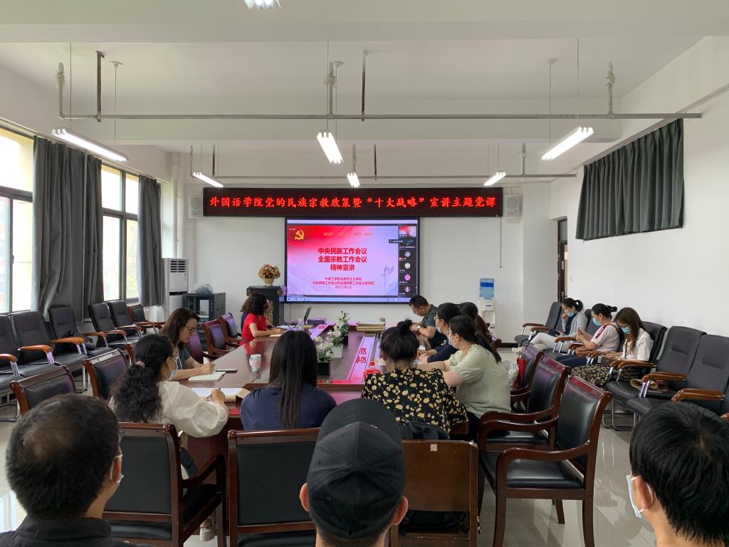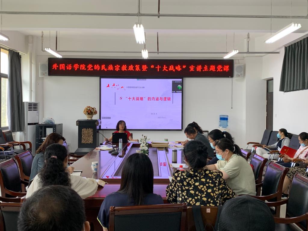 党的民族宗教工作政策宣讲,是学校党委为深入贯彻落实中央和省委、省委教育工委关于民族宗教工作决策部署,提升做好新时代民族宗教工作能力水平的工作措施之一,聚焦“十大战略”的主题党课是tyc41183太阳成集团深入学习贯彻省第十一次党代会精神具体举措。学院党委将结合正在开展的“能力作风建设年”活动,组织党员职工继续深入学习,围绕党的民族宗教政策理论、锚定“两个确保”、实施“十大战略”,以过硬的政治素养、专业能力、工作作风迎接党的二十大胜利召开。(通讯员 李向民)