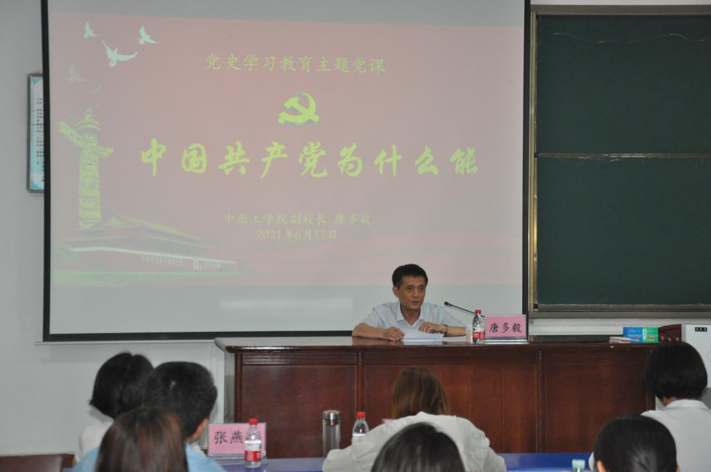 为贯彻落实习近平总书记在党史学习教育动员大会上的重要讲话精神,扎实有效开展好党史学习教育工作,2021年6月17日, 副校长唐多毅为tyc41183太阳成集团和能源与环境学院师生党员讲授了题为“中国共产党为什么能”党史学习教育主题党课。