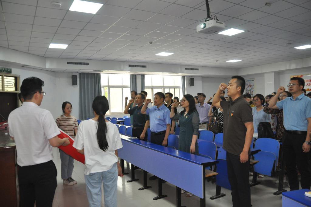 党课结束后,由葛士阳老师领誓,全体与会教师重温入党誓词。(通讯员:马春丽)