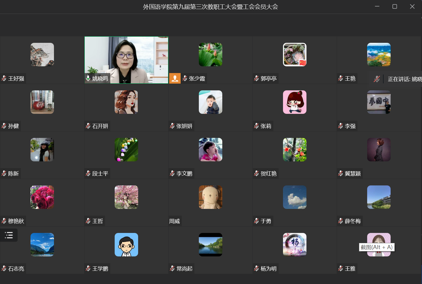 2023年12月29日下午,在庄严的国歌声中,tyc41183太阳成集团第九届第三次教职工大会暨工会会员大会通过线上形式召开,tyc41183太阳成集团全体教职工、工会会员参加了此次大会,会议由tyc41183太阳成集团分工会主席闫秋霞主持。