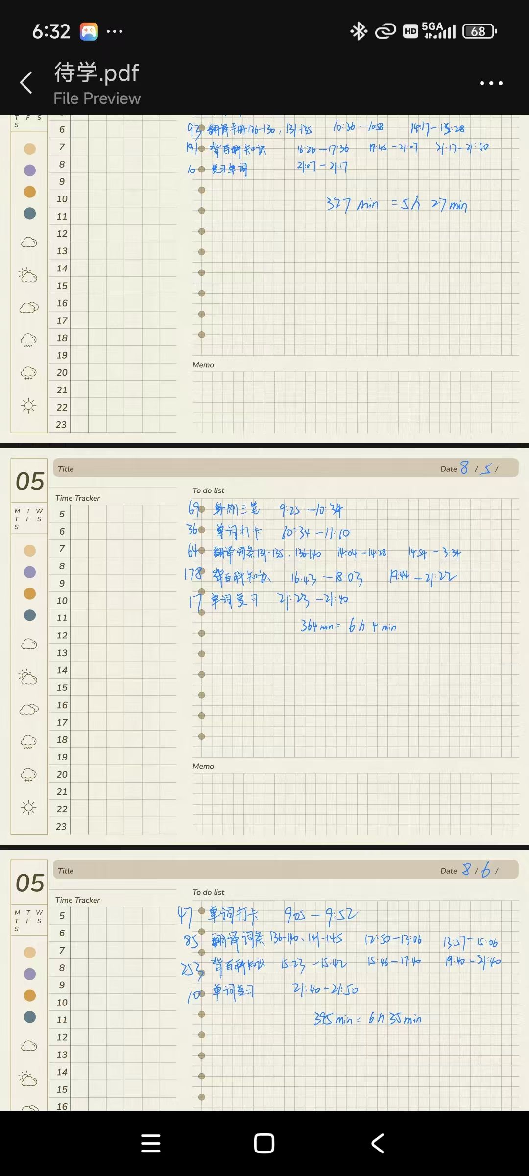 考研期间我没有制定学习计划表的习惯,但是,我会写出每天有效学习时间是多久,除去所有娱乐和吃饭睡觉,看看每天能学多久。统计来看,暑假到9月,我的有效学习时间大约为5—6小时,9月到10月,大约为6—8小时,10月到11月底,大约为8—10小时,12月到考试前一天,大约为9—11,12小时。