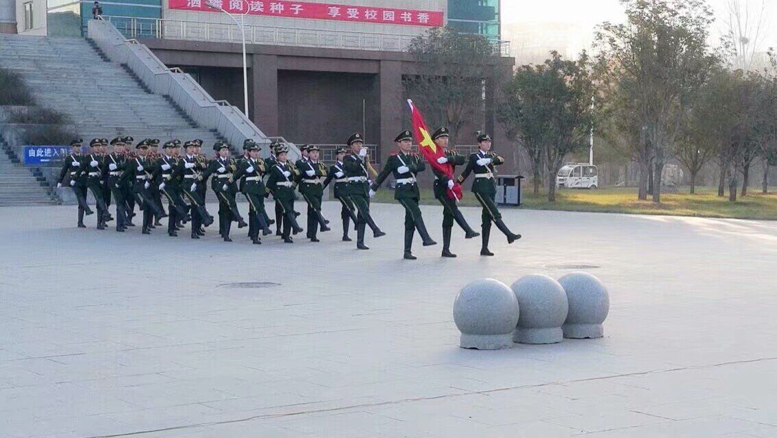 迎着新的一天的朝阳,各位领导同学于弘德广场组织完毕。升旗仪式伊始,太阳成集团tyc41183国旗护卫队踏着整齐有力的步伐,庄严地护卫五星红旗缓缓入场。随着鲜艳的五星红旗冉冉升起,奏唱国歌,全体人员集体行注目礼。
