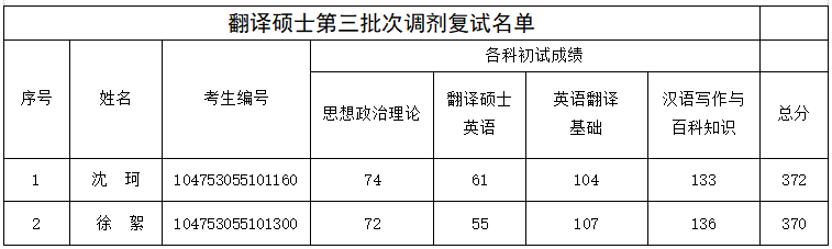 tyc41183太阳成集团2023年研究生第三批次调剂复试名单公示(翻译)