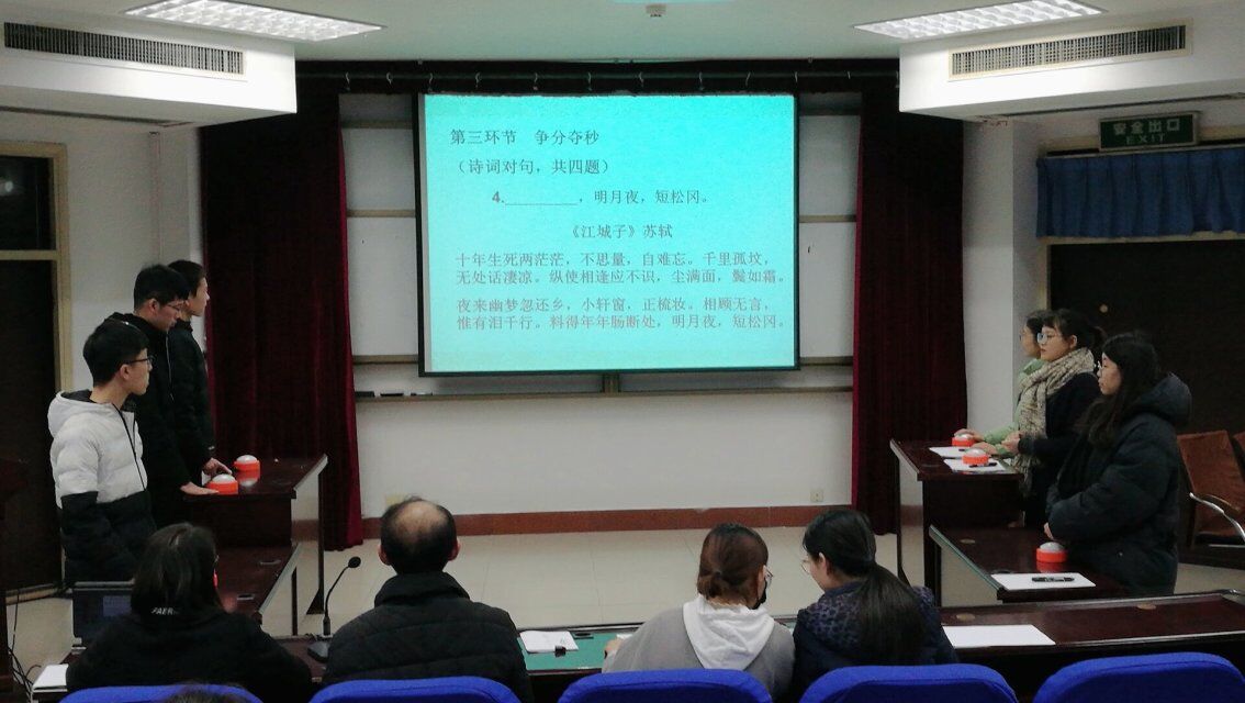 为弘扬优秀中华传统文化,丰富太阳成集团tyc41183校园文化生活,推动校园人文环境建设,提高我校学生人文素养,促进学生素质的全面发展。tyc41183太阳成集团于2017年12月13日在四号教学楼311教室举办了“中工诗韵”诗词大会复赛。出席此次活动的评委有tyc41183太阳成集团副院长柴高洁,汉语国际教育系主任陈大为,汉语国际教育系副主任任永安,汉语国际教育系朱洁老师,彭琰老师。