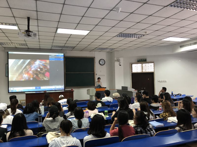 交流会上,两位志愿者首先对什么是汉语教师志愿者项目、如何申请和备考、汉办面试的流程与技巧培训和经验等分别进行了详细地介绍。他们认为,出国任教需要厚积薄发,要多培养自己的综合能力和综合素质,这样才能在国外过得更充实。且指出志愿者不仅要掌握汉语教学技能,还要了解中外文化差异,不断琢磨教学方法和技巧。随后,他们通过图片的形式与大家分享了在泰国教学的生活情况,从住宿环境、课堂状况、风土人情等多方面向大家展示了汉语志愿者在泰国丰富多彩的生活。细致的讲解、精彩的图片、生动的事例,让在场同学了解泰国风土人情的同时,更明白了做一个对外汉语志愿者的职责所在。在最后的互动环节中,两位志愿者也生动详尽地解答了同学们的各种问题,深入浅出的指导,让同学们受益匪浅。至此,此次汉语教师志愿者经验交流分享会在掌声中圆满结束。