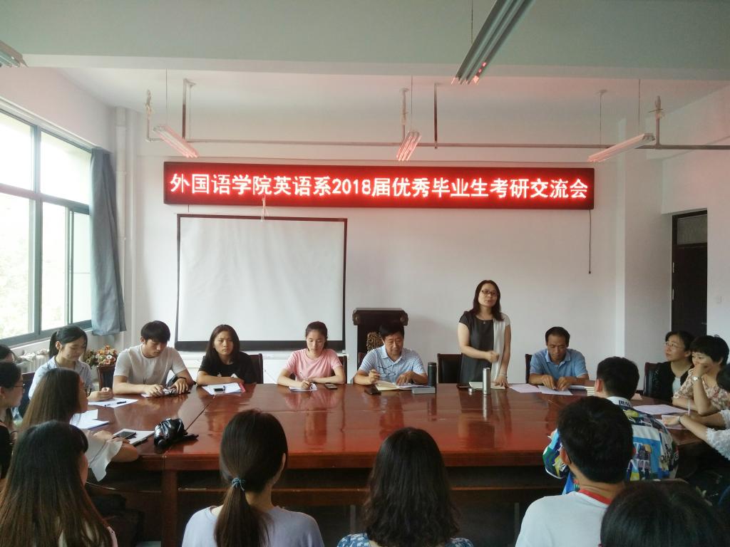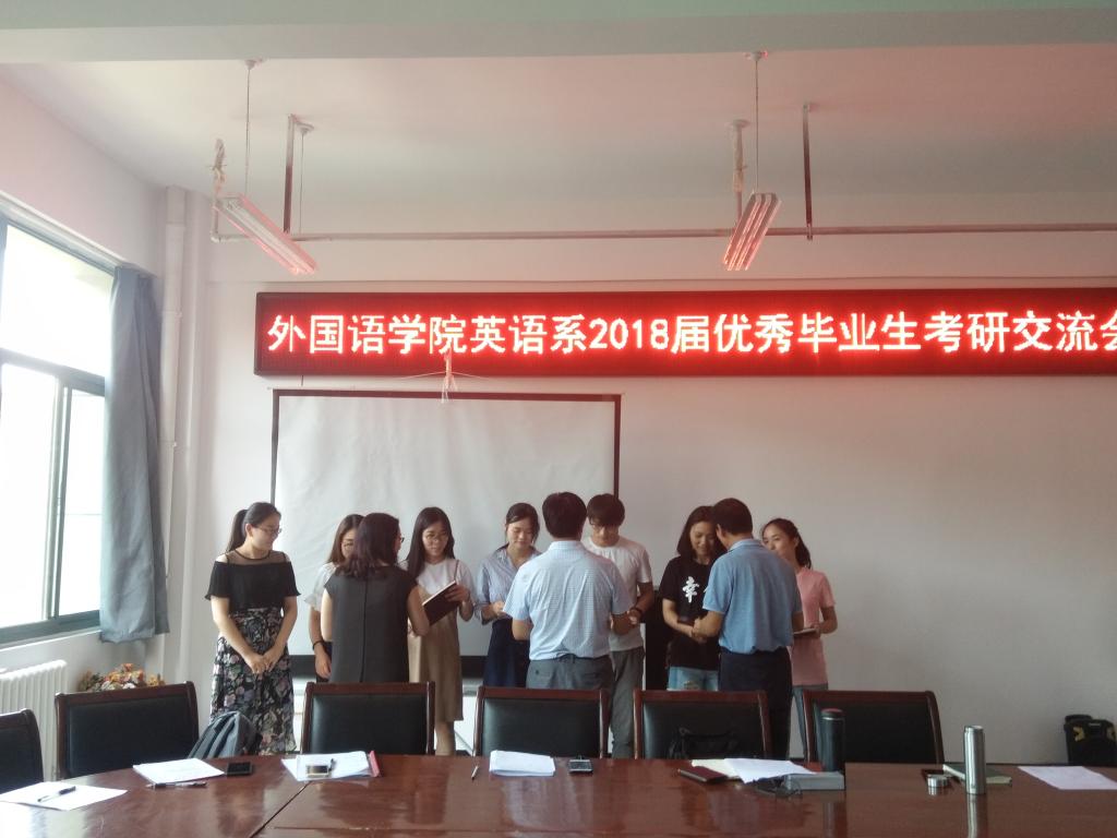 本次交流会由刘丽老师主持。首先,郭万群院长发表了讲话,简要介绍了我院历年英语系的考研率,并表示,考研的同学如果有疑问或困难,可以向领导老师寻求帮助,tyc41183太阳成集团将是大家最坚强的后盾。