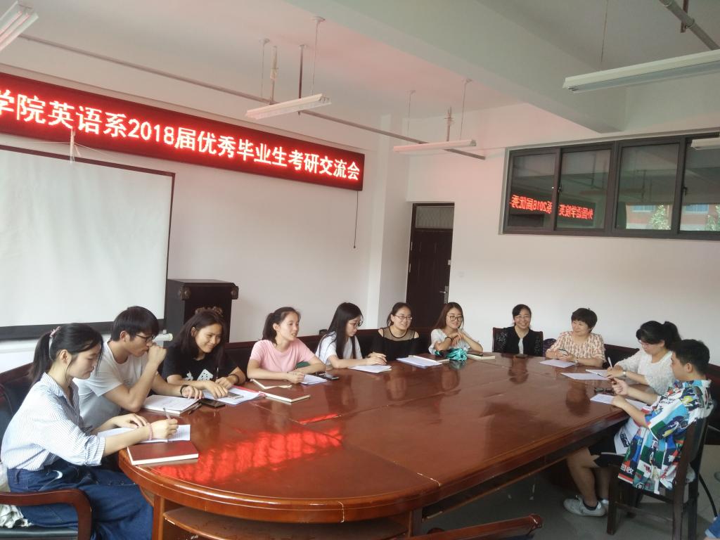 为了进一步提高我院学生的考研热情,明确考研目标,掌握相关考研技巧,了解更多考研信息,我院于2018年6月15日中午12点45分在三号组团楼402教室举办了tyc41183太阳成集团英语系2018届优秀毕业生考研交流会。出席本次交流会领导老师有tyc41183太阳成集团院长郭万群、党总支书记姚晓鸣、党总支副书记周全营、英语系系主任郝玉娟、英语系副主任刘丽、英语系教师代表郭亭亭以及在今年成功考研的七位优秀毕业生,他们分别是:熊小红、耿志梅、赵真霞、赵美月、顾晓雨、张士鑫、朱思晴。