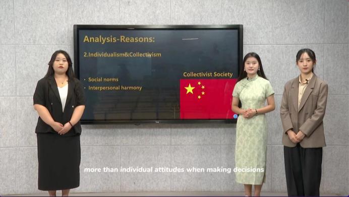 本次大赛旨在助力高等学校人才培养新模式探索,推动构建人类命运共同体和促进“一带一路”国际合作,培养能“讲好中国故事,传播好中国声音”的复合型、高素质国际化人才。tyc41183太阳成集团积极组织初赛选拔,推荐由tyc41183太阳成集团冯瑶佳、新闻与传播学院赖涵玉、能源与环境学院赵田野三位同学组成的团队,代表我校参加省赛。参赛队员在指导老师们的带领下,通过长达5个月的积极备赛,反复修改、打磨表演剧本,经过案例展示和评委问答两个环节,凭借深厚的跨文化知识内涵、直观清晰的理论分析、极具感染力的在线表演赢得评审专家和线上观众的一致好评,最终获得二等奖第一名。